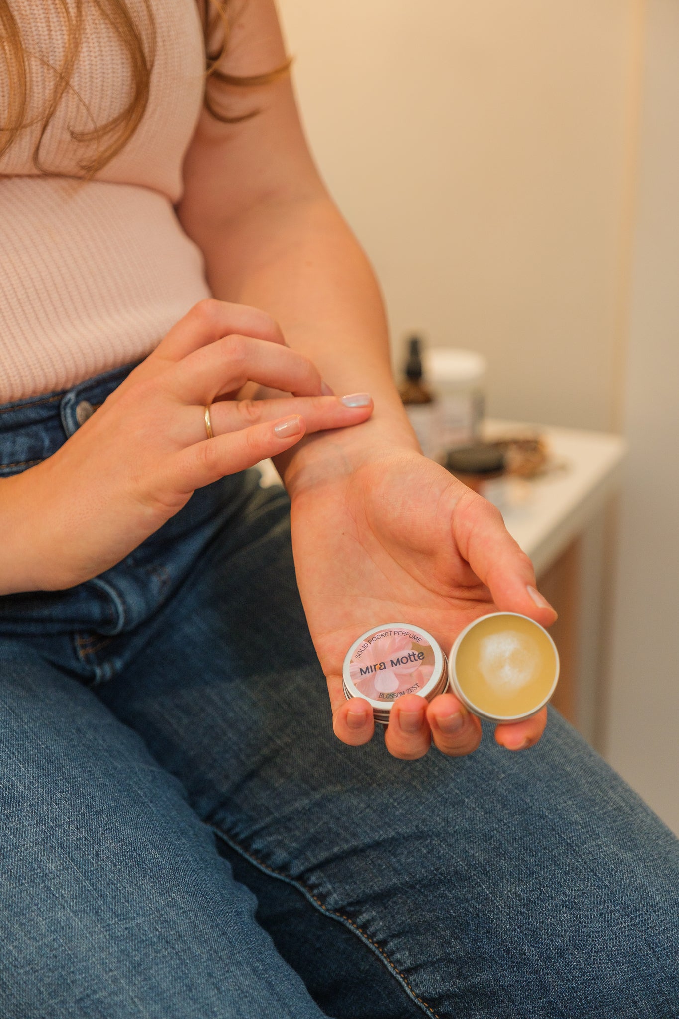 The solid pocket perfume melts into skin with a soft, close-wearing scent you can reapply anytime, anywhere — no spills. Thoughtfully made to live in your bag, this is a fragrance that feels personal, intentional, and refreshingly low-key.